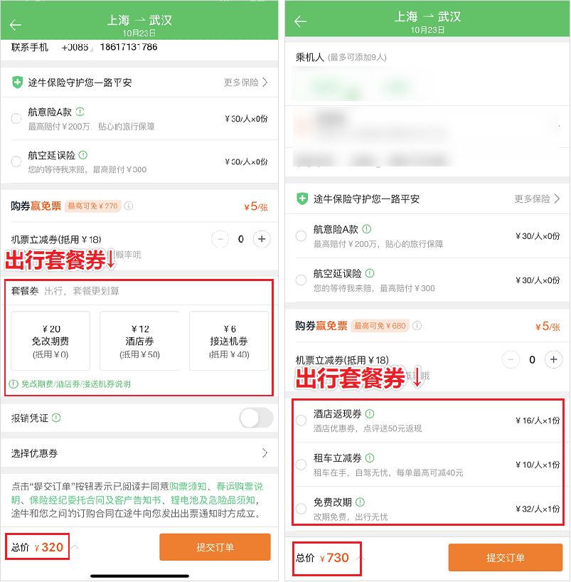 虽然平台也提供了不捆绑出行券的”普通预订”方式,但如果不仔细看的话,真的留意不到。这种利用字号大小来误导用户的行为只能说太鸡贼了!