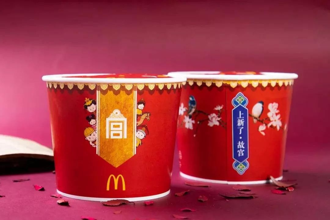 比如,麦当劳和顺丰、饿了么合作,发力外卖业务。今年还跨界推出限量新品“故宫桶”和周边文创产品故宫毯。