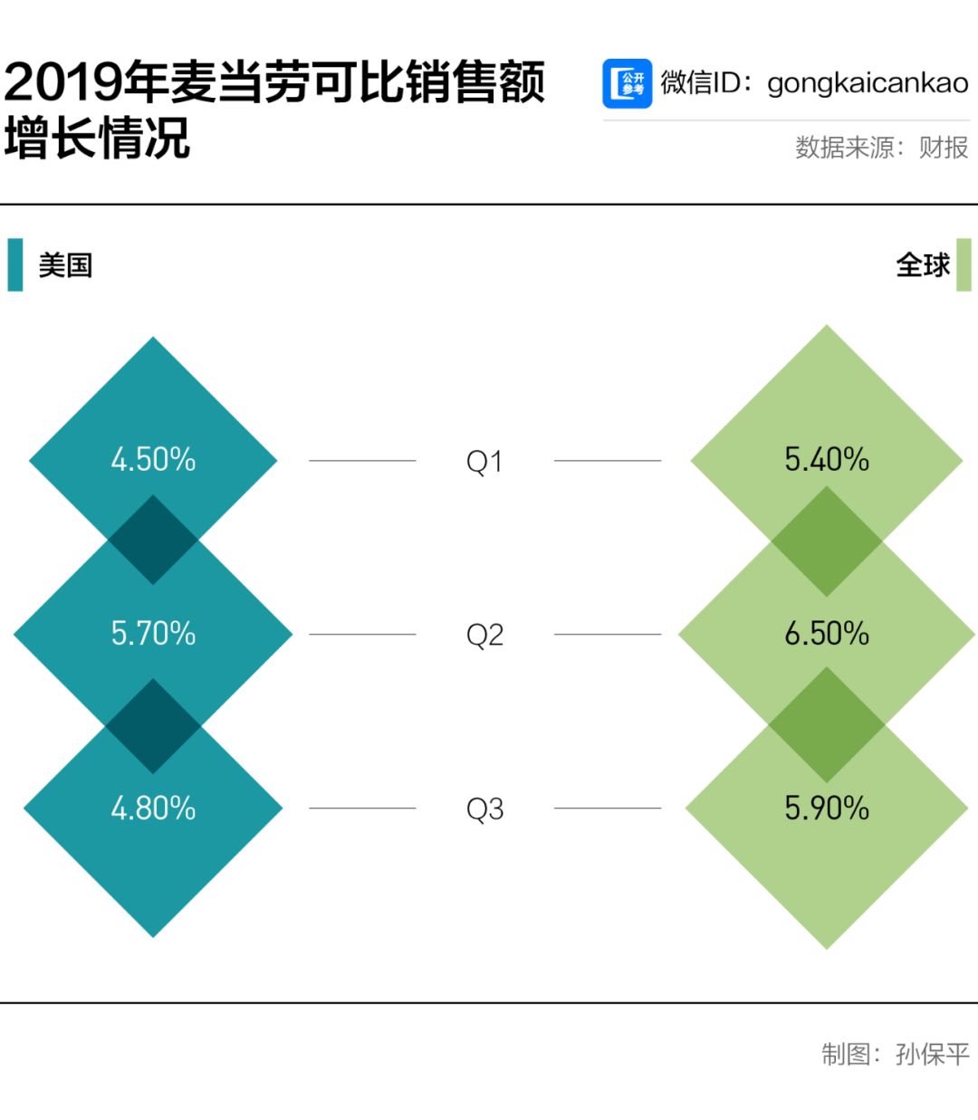今年第三季度,麦当劳美国市场的可比销售额增长4.8%。不仅低于上个季度,和全球的差距也有所扩大。