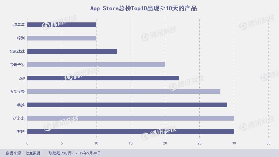 头条旗下视频剪辑App“剪映”,以及社交电商“拼多多”连续一个月位居总榜Top 10之列。