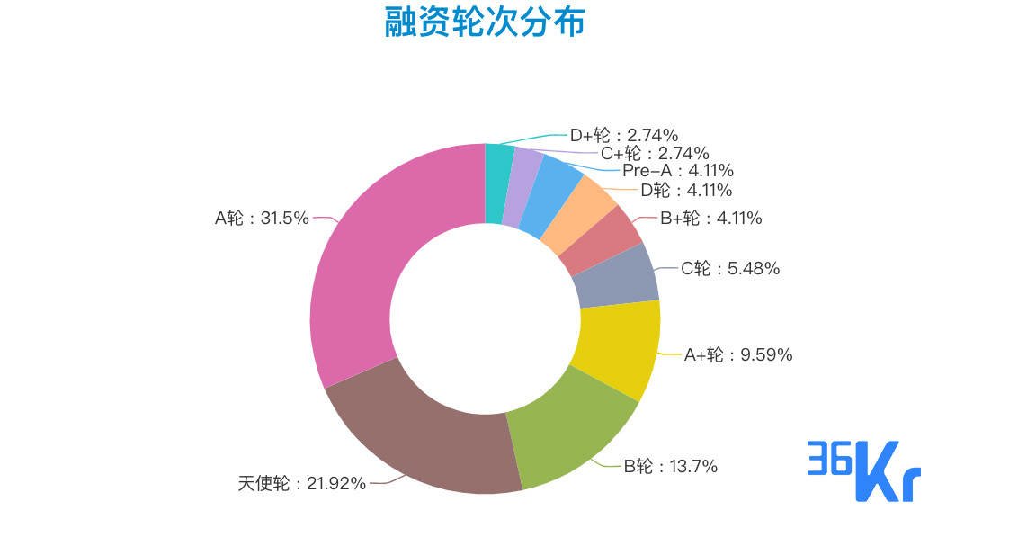 融资轮次方面,本周内融资多集中在天使轮和A轮,这两个轮次的融资数量占据总量的一般以上。36氪经公开资料整理,具体的融资赛道和轮次分布情况如下图: