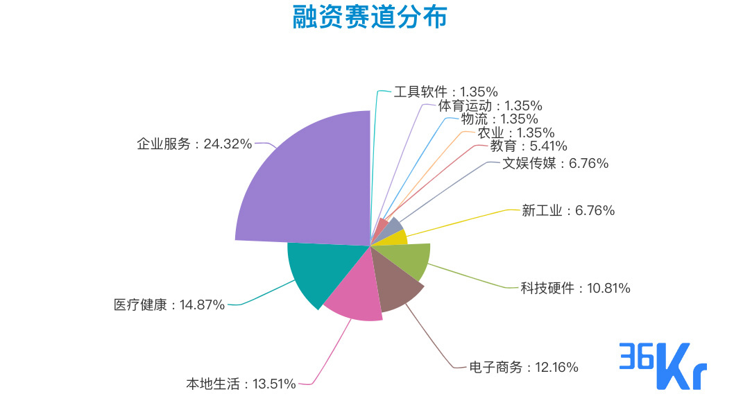 本周大额融资事件中,企业服务赛道吸金最多,共有8笔亿或亿元以上的融资,其次是电子商务赛道,共有2笔亿或亿元以上的融资事件,新零售生态企业「KK集团」融得本周最高的资金量(1亿美金)。