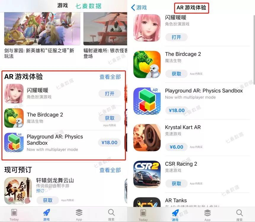 在七麦数据之前《奔走相告!AppStore新增7大模块;搜索界面4种变化互换》一文中曾提到AppStore对AR类产品的推荐力度加大。近日,七麦针对AppStore推荐的AR产品进行分析,以下为分析结果。