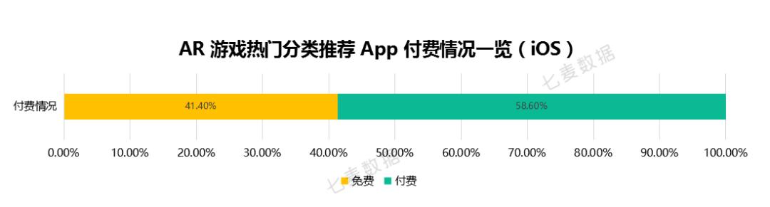 在AR游戏分类中,目前有29款游戏被苹果小编推荐,其中12款为免费游戏,占比41.4%,其他17款为收费游戏,占比58.6%。
