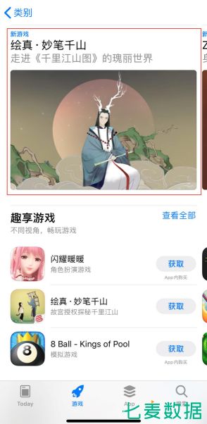 在AppStore游戏模块中,AR游戏被列为单独分类。值得注意的是,AR游戏并没有在主页直接显示,而是需要点击“查看全部”查看所有类别才能看到AR游戏显示在分类的最底部。