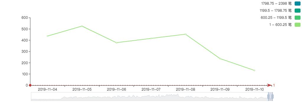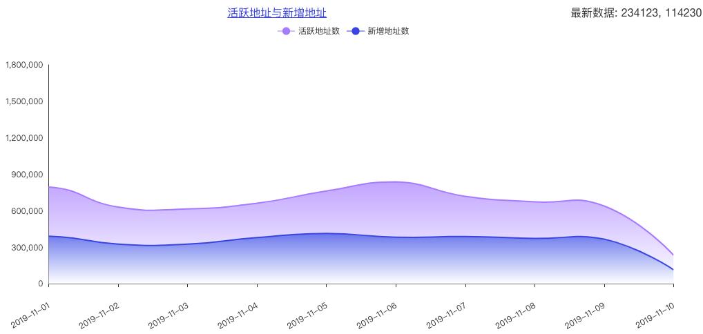 截至11月10日,比特币新增地址数有所增加,为11万+,相较上周略有减少;活跃地址周内高点为83万+,低点为23万+,与上周持平。