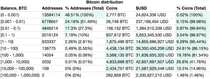 比特币地址中,48.51% 的地址占有全部币量的 0.01%,较上周微涨;24.19% 的地址占有全部币量的 0.14%,较上周微涨。