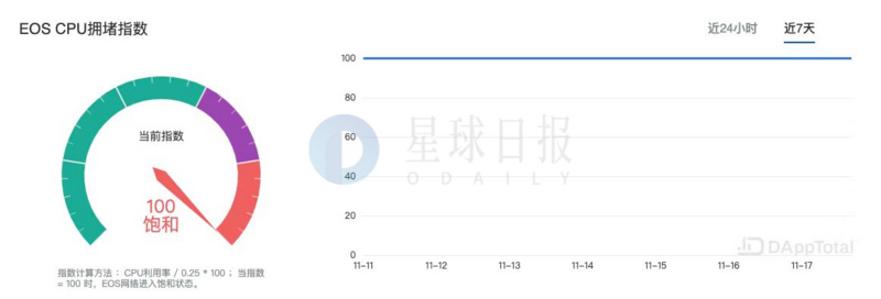 DAppTotal:EOS主网CPU拥堵指数为100%,EIDOS实际消耗占比82.93%
