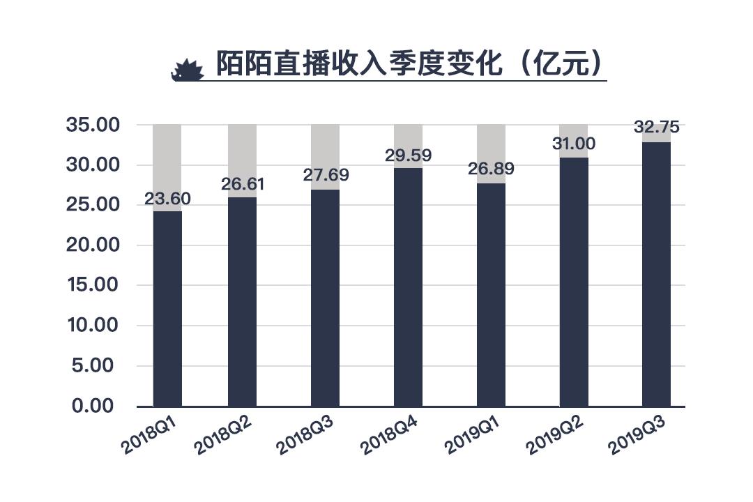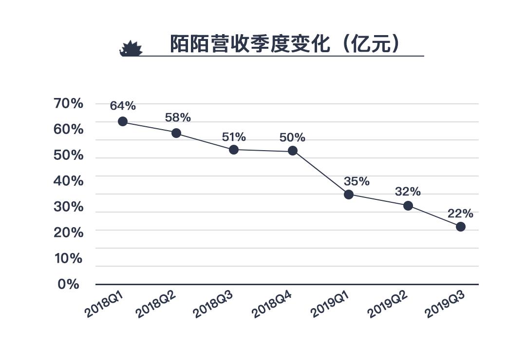 截止2019年9月,陌陌App月活已经连续3个季度“横盘”,长期在1.1亿左右徘徊;直播之外的营收支柱增值服务,在Q3的增速只相当去年同期的一半多点,相比之下增速大幅放缓。