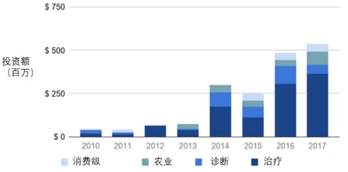 图1 2010-2017全球微生物投资领域及金额分布(数据来源:Global Engage)