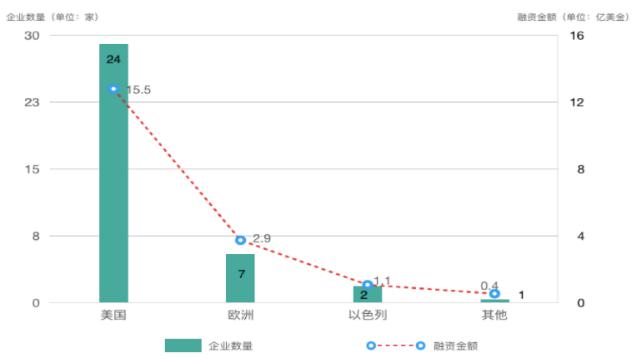 图2 治疗领域初创企业地区分布及融资额(截至2019年,数据来源知几未来研究院[1])