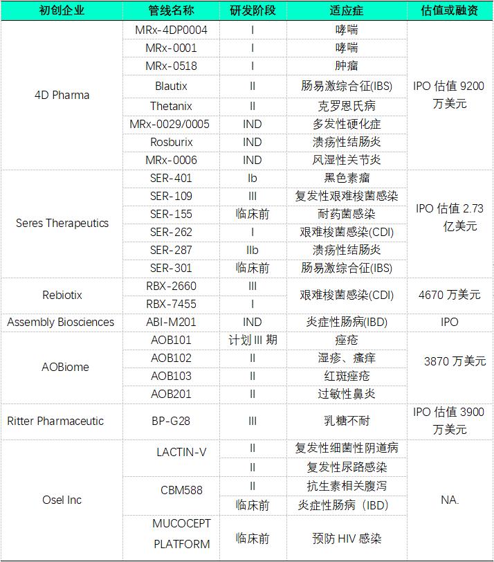 图9 部分初创企业微生物组小分子药物在研管线