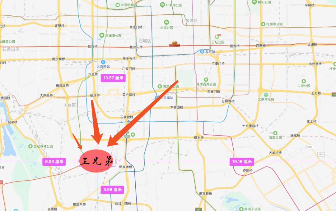 距离郭公庄直线距离1.2公里,按实际行走来说,也得10分钟以上了,以800米为单位,属于伪地铁盘,棋差一筹。