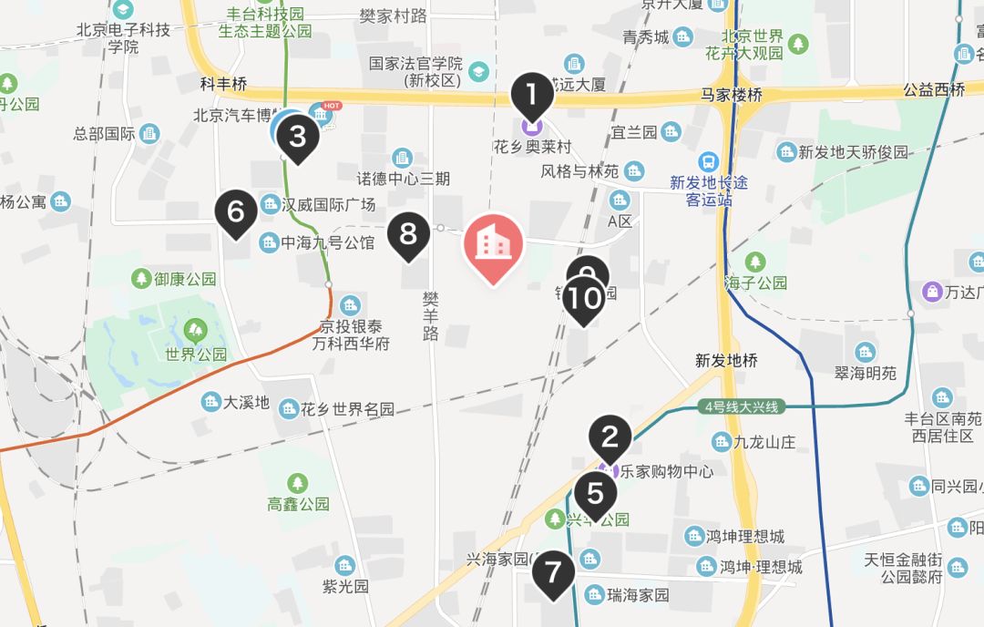 毕竟是4环内,总部基地商圈,商业和医疗自然是非常成熟的。丰台万达广场、花乡奥莱、宜家家居、万豪酒店、荟聚中心等高端商业配套均分散其左右。