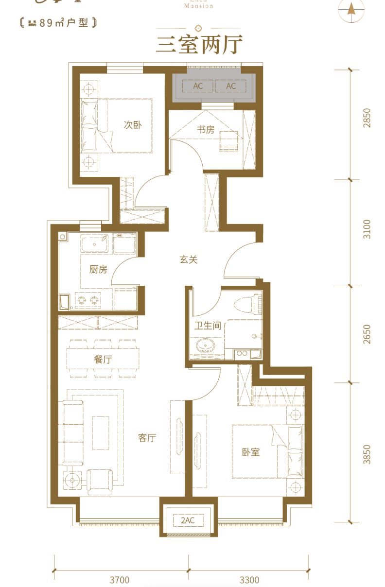 接下来我们看89平米的主流户型,逸府也做出了两个产品。