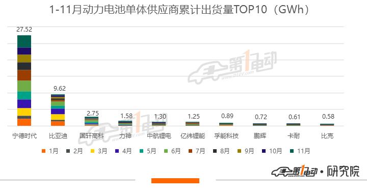11月动力电池市场:比亚迪退居第二梯队,“二八”局面宣告结束