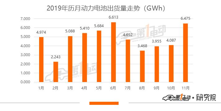 根据工信部合格证产量数据,2019年11月共产出新能源汽车10.8万辆。根据第一电动研究院的统计测算,动力电池2019年11月装机量约为6.475GWh,同比下降27.71%,环比上涨58.4%。虽然仍是同比负增长,但这是除6月以外,今年单月装机量的最高值。