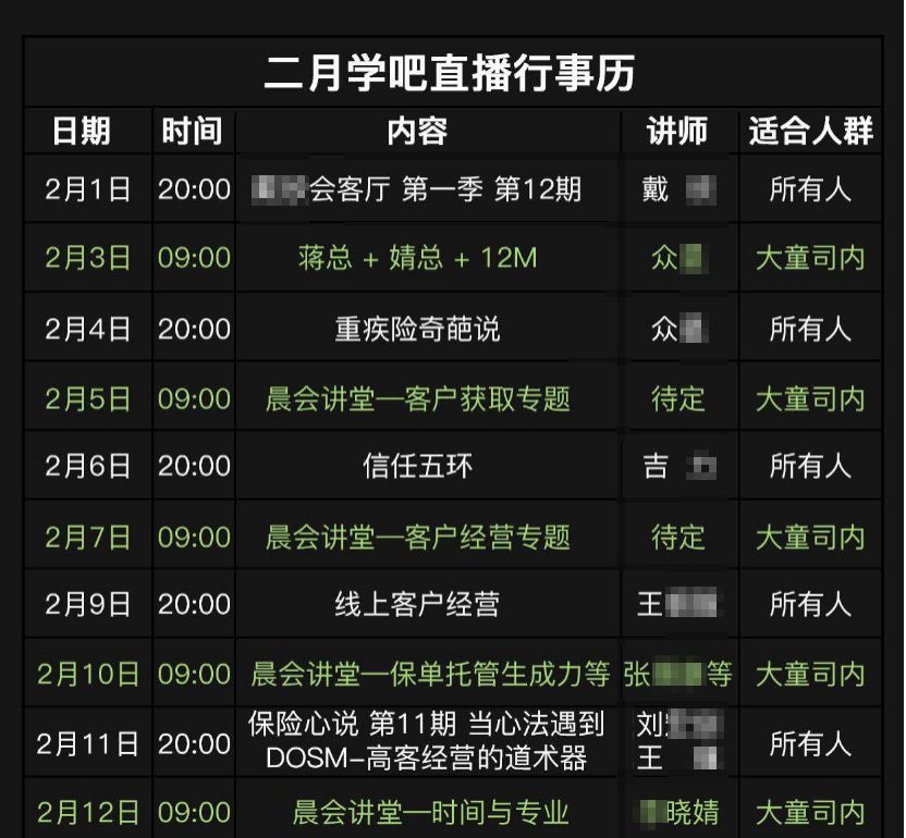 而大童保险也出了一个详细的线上课程表,基本是一两天一节课。