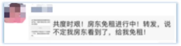 也有一些租客看到自家房东“没吭声”,就将免租、减租的倡议或新闻转发在朋友圈里,希望“不经意间”让房东看到。更有租客见免租无望,直接将倡议、新闻发给房东,主动要求对方减免租金。