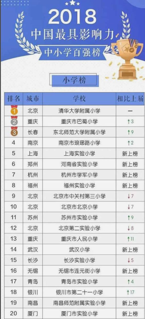 关于各城市中小学教育实力对比,我们可以参考国内知名教育智库“校长会”发布的“2018年中国最具影响力中小学百强榜”。