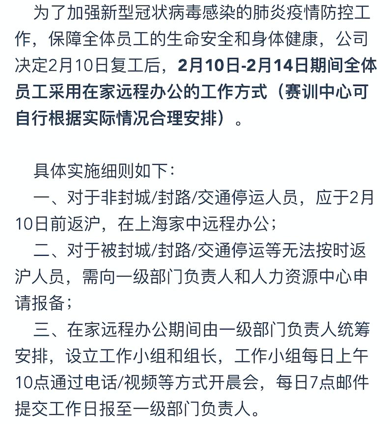 疫情爆发之后,许多俱乐部都针对各自的情况,对复工时间和线上办公进行了特殊的规定。