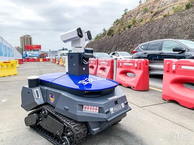 ▲优必选警用巡视机器人“建国”在深圳公安某治安卡口执行巡逻任务