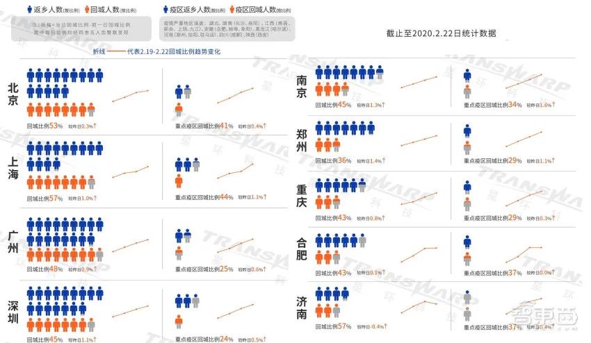 AI+大数据公司星环科技也将其大数据平台用于全国主要城市的返程客流比例、重点疫区返程比例分析。