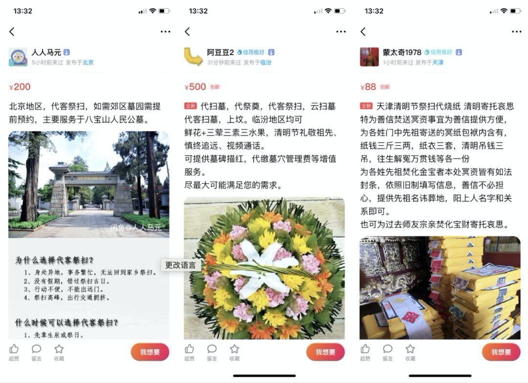 你去看今年清明节前夕因疫情影响闲鱼上出现的代祭扫服务,其实就是这种真实需求。它的价值在于减少跨城流动,这样的“代经济”形态其实是可以鼓励其存在。它可以极大程度解决跨地域流动的问题,让服务和需求得到高效匹配。