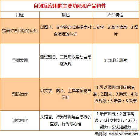 其中,国外自闭症App功能集中在治疗上;国内尚处早期阶段,自闭症App集中在预防及提高认知方面。