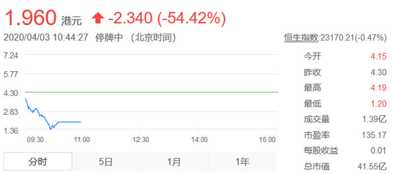 4月3日,受瑞幸咖啡财务造假丑闻影响,神州租车股价开盘后一路暴跌。截至发稿,神州租车已停牌,停牌前股价大跌54.42%,跌幅一度超过70%。