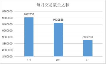 另外,比特币每月总交易数量却在不断下降,从 1 月份的 9612337 笔跌至 3 月份的 8904203 笔,降幅为 7.37%。