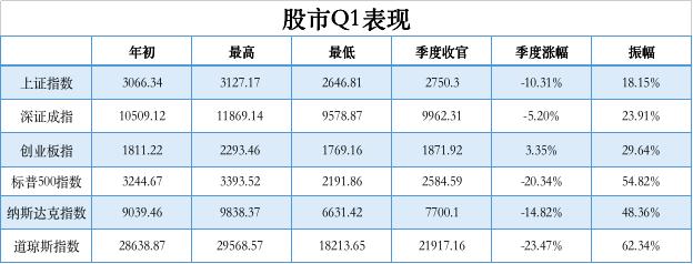 新冠肆虐与原油价格战,为全球经济蒙上阴影。美股三大股指全线走低,多次熔断,季度跌幅均在 10% 以上。A 股收冲击略小,但上证指数的季度跌幅也达 10.31%,深圳成指季度跌幅 5.2%。黄金曾不负众望,在逆境中最高涨了 12.2%,不过 3 月起,其避险属性也短暂失灵,最终季度微涨 3.7%。