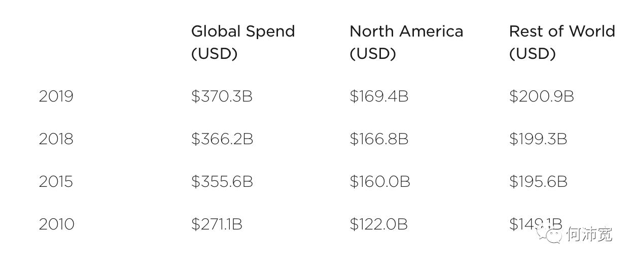 北美(以美国为主)企业培训市场规模,来源:Training industry.com