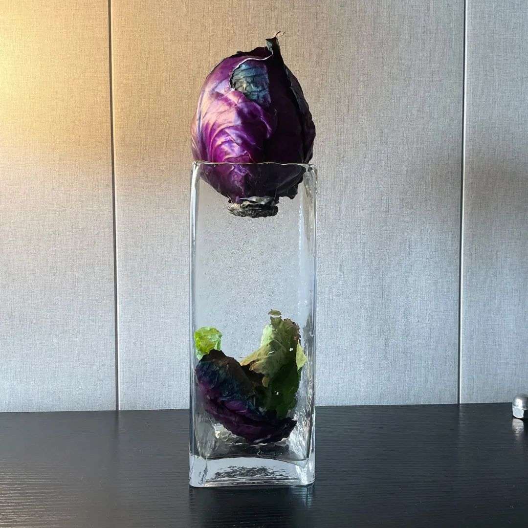 受访者之一、摄影师古西在家拍摄的紫甘蓝“装置”