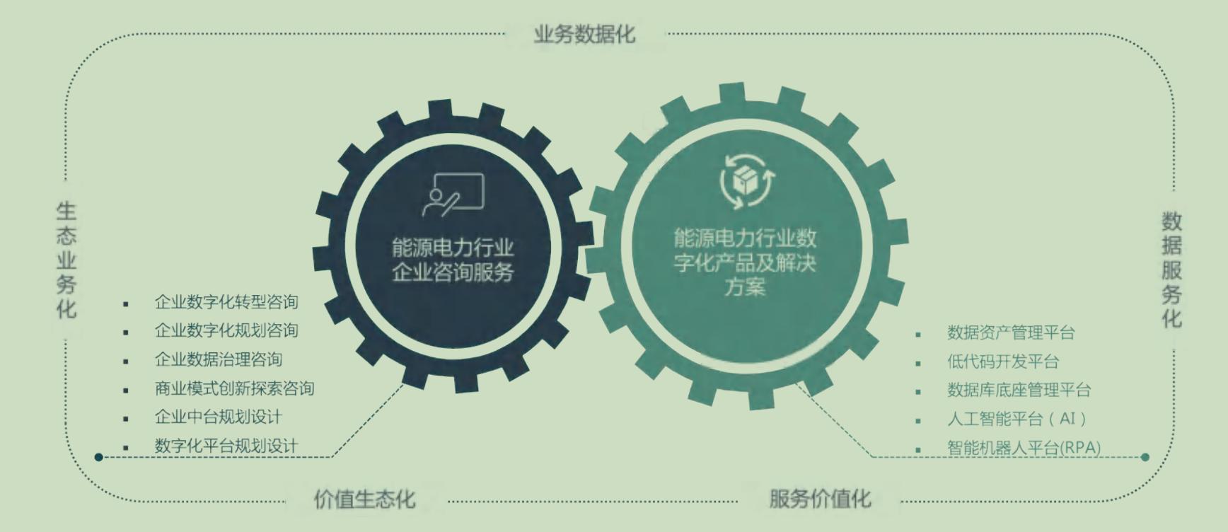 回溯电力企业的数字化转型,从2000年开始,主流咨询公司如IBM、埃森哲等已经帮助国内电力企业初步完成了信息化阶段。信息化建设的特点,一般都是采用国外成熟的商业化数据库、中间件平台等,在其上进行二次开发,其销售、研发、服务环节,都是较为独立的。