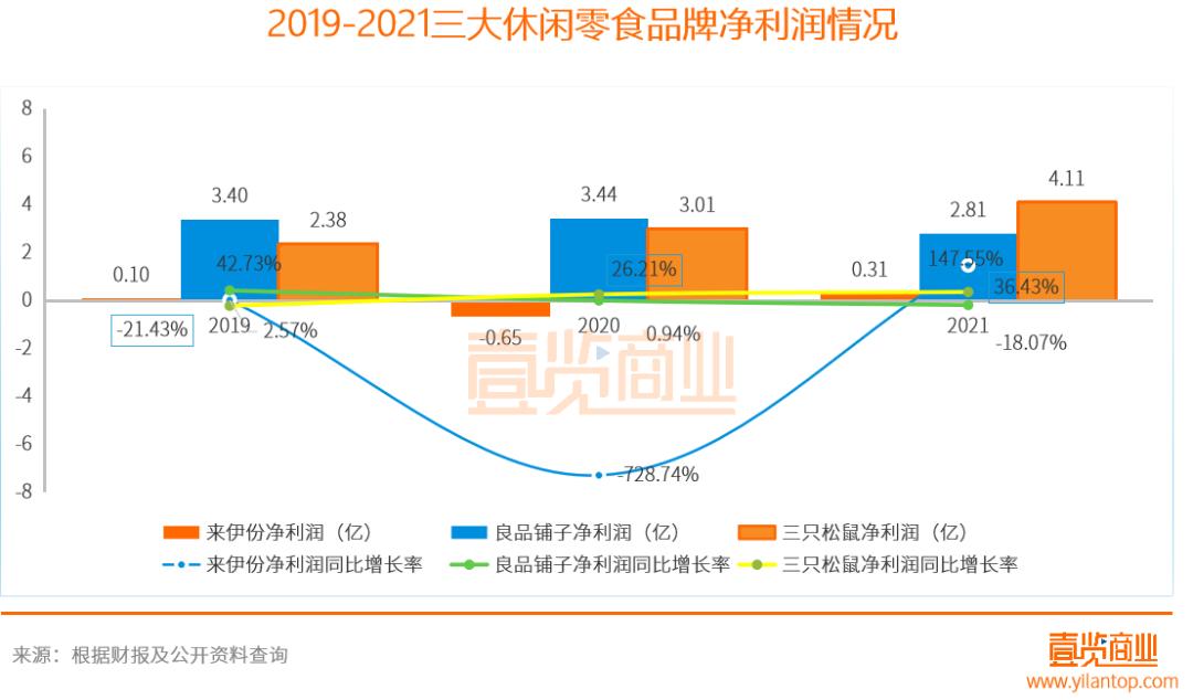 很显然,从业绩上,来伊份便已落后于这些后起之秀。