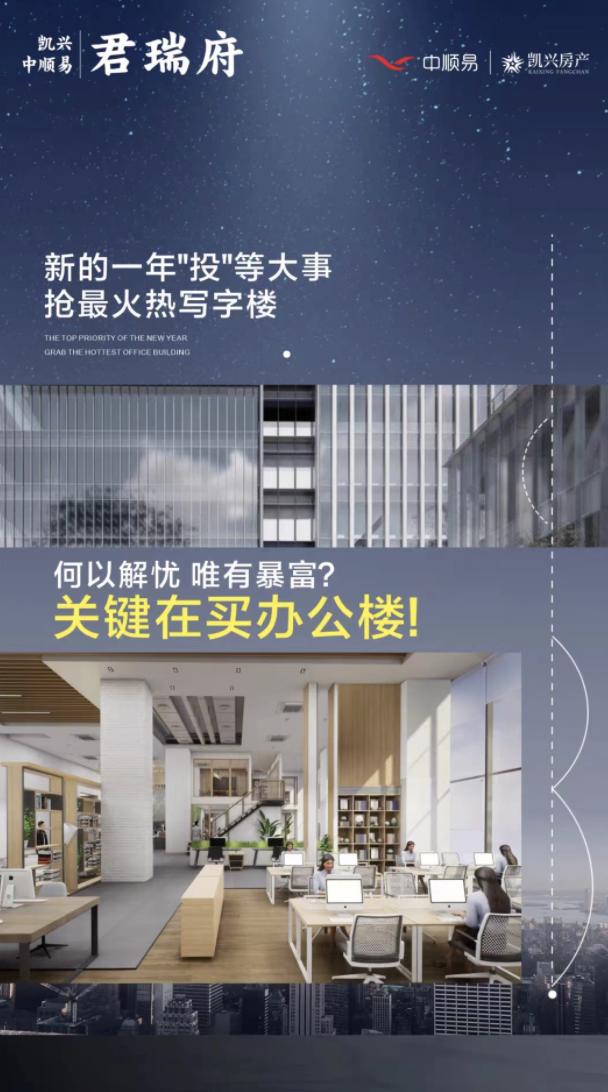 而在君瑞府的官方认证公众号宣传中,也有“抢最火热写字楼”“何以解忧,唯有暴富?关键在买办公楼!”“300平米大平层,自用、出租、投资,办公室比办公司更赚钱”等等标语。