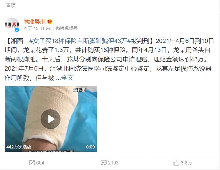 (为43万自断两根脚趾,骗保不成反获3年有期徒刑)