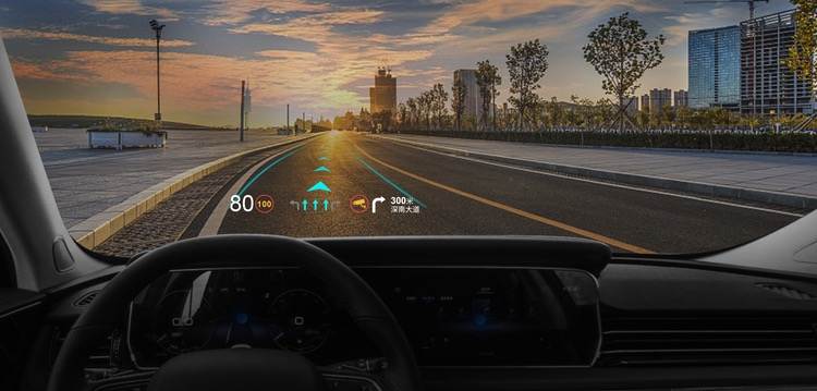 落实到产品层面,疆程技术将智能出行所需的导航、ADAS功能、中控仪表信息及娱乐信息运用AR技术在前挡风玻璃上实现HUD实时显示,在导航时可以直接将信息显示到HUD上,并融合实际的路况场景进行显示,比如当车道偏移时,可以直接在偏移车道线上显示。