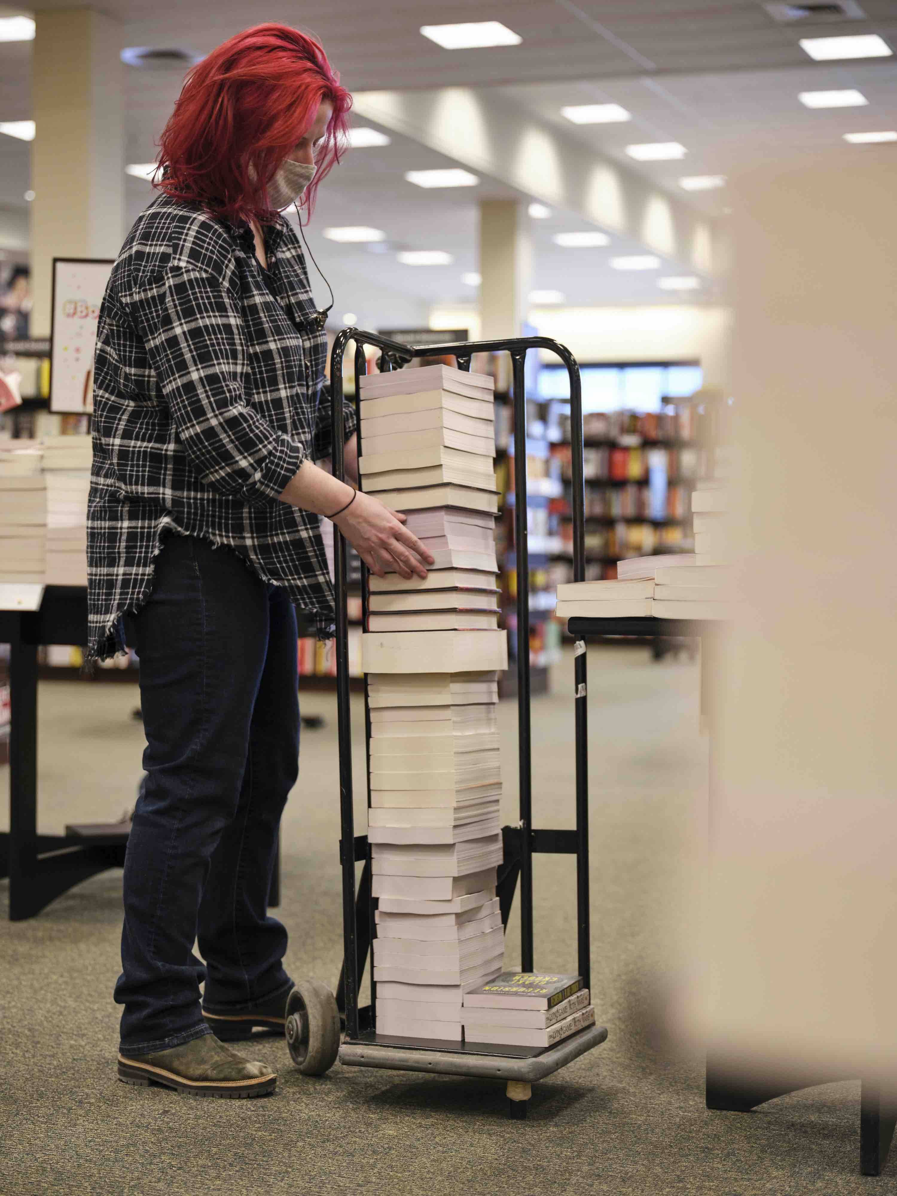 店员在巴诺书店整理书籍|图片来自《纽约时报》|摄影 Cody O'Loughlin