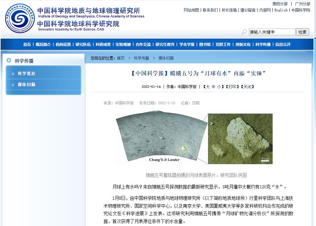 月球诞生时一定也富含水量,以至于至今其矿物中还含有不少水图/中科院官网网页截图