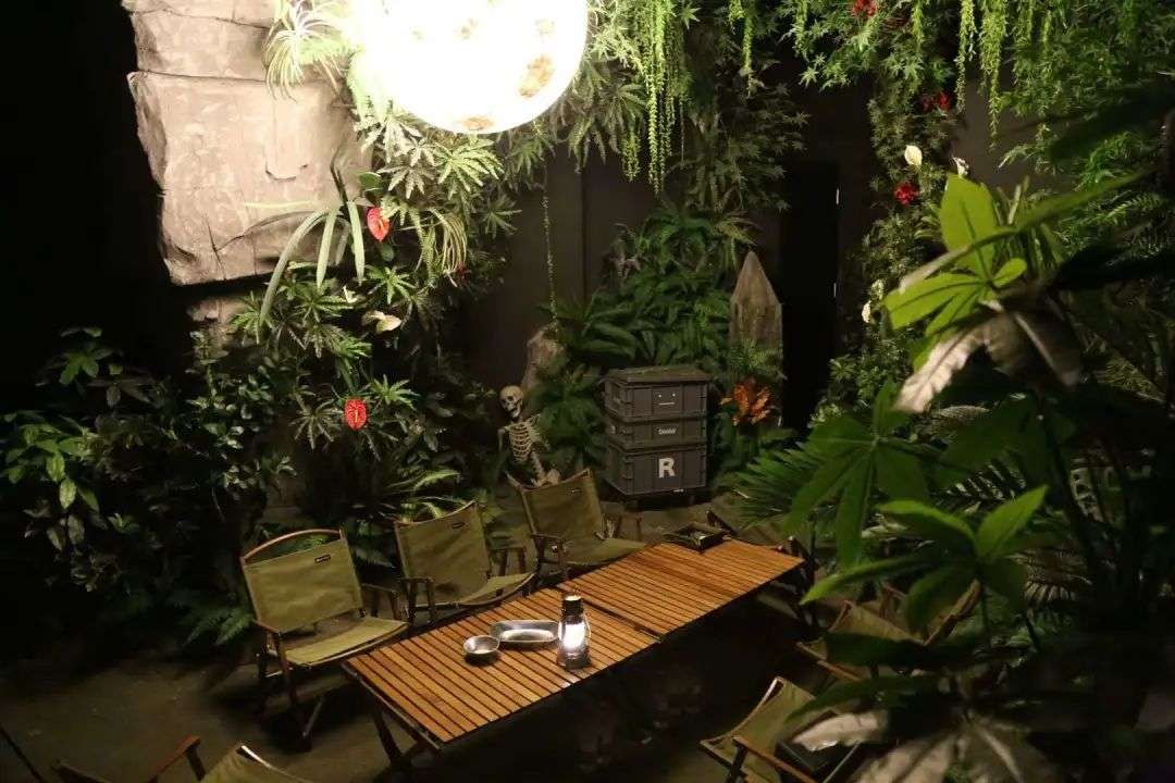 长沙心来剧本杀主理人李宇辰向开菠萝财经介绍,其门店内的露营房,是在室内空间先通过泥塑做出山石造型,再请园艺师进行绿化置景,配备帐篷、天幕、露营椅等露营装备,让玩家有一种身临户外的感觉,但同时又可以免于恶劣天气、嘈杂环境的困扰。