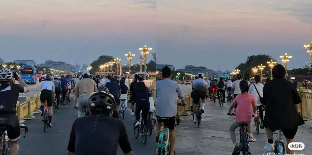 在社交媒体上,北京长安街的骑行者开始扎堆。被围栏专门隔开的自行车道上,专业骑行者头戴头盔、身着骑行服、脚踩动辄上万的专业级自行车,与骑着各色共享单车的男女老少并驾齐驱。