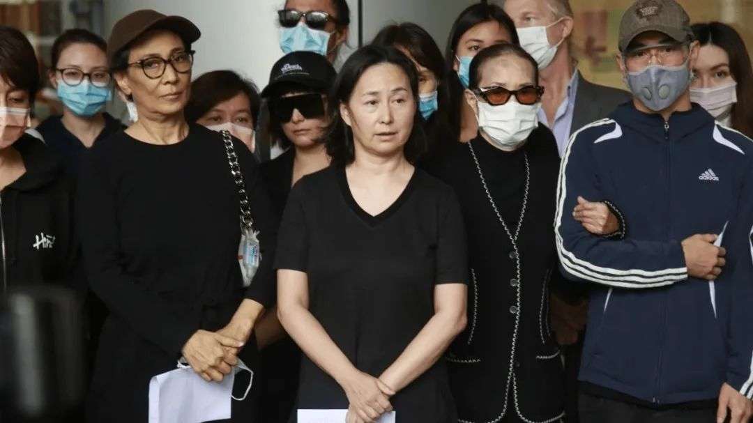 何超琼代表家族对外宣布“赌王”去世的消息,右一为何猷龙