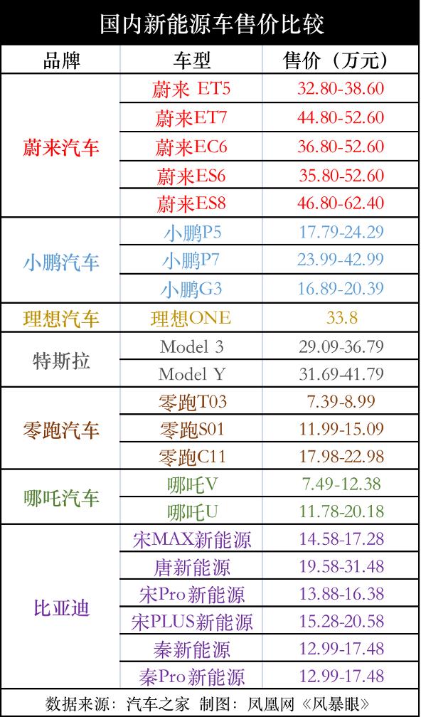 凤凰网《风暴眼》了解到,涨价后,蔚来汽车的平均售价在目前国内的新能源车品牌中是最高的,约为44万元。这个平均价格远远高于小鹏、理想和特斯拉,是哪吒汽车的几乎两到三倍。