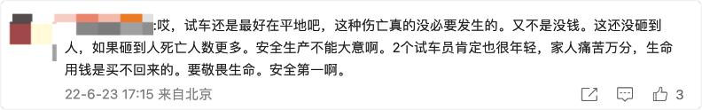 “为什么在楼上测试?万一在楼上着火了岂不是更危险”“地面测试难道不是空间更大也更安全吗”“幸运的是事故发生时楼下没有行人,不幸的是两个测试员因为这场测试丧失了生命,这对于他们的家人来说绝对是晴天霹雳。”……
