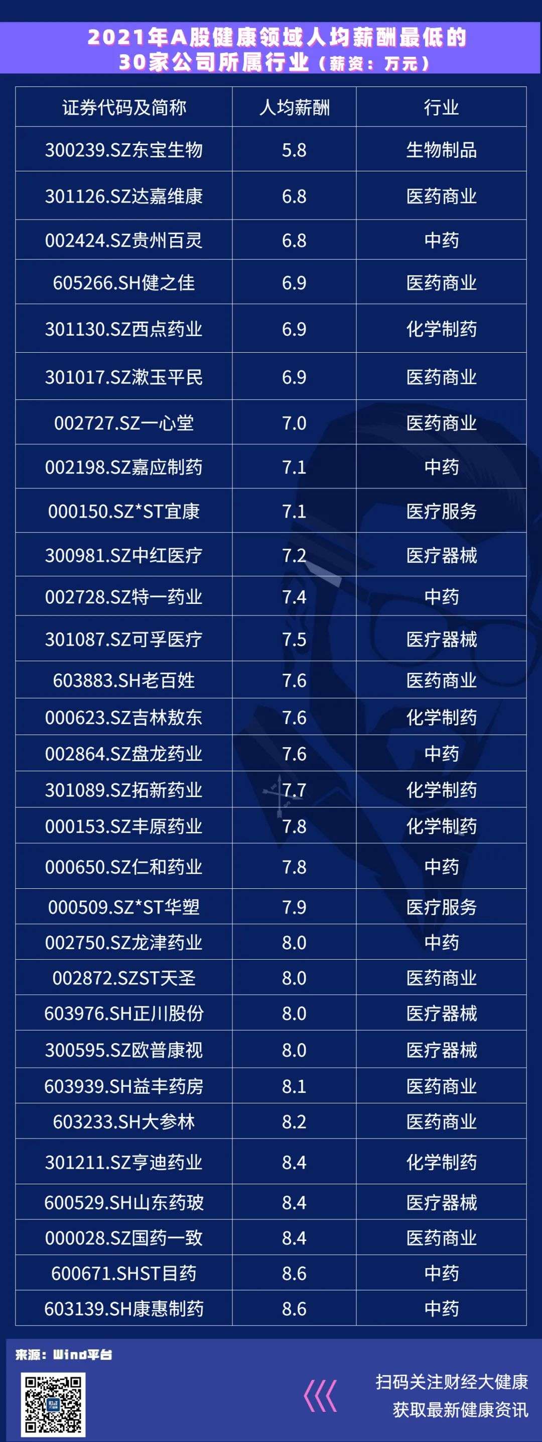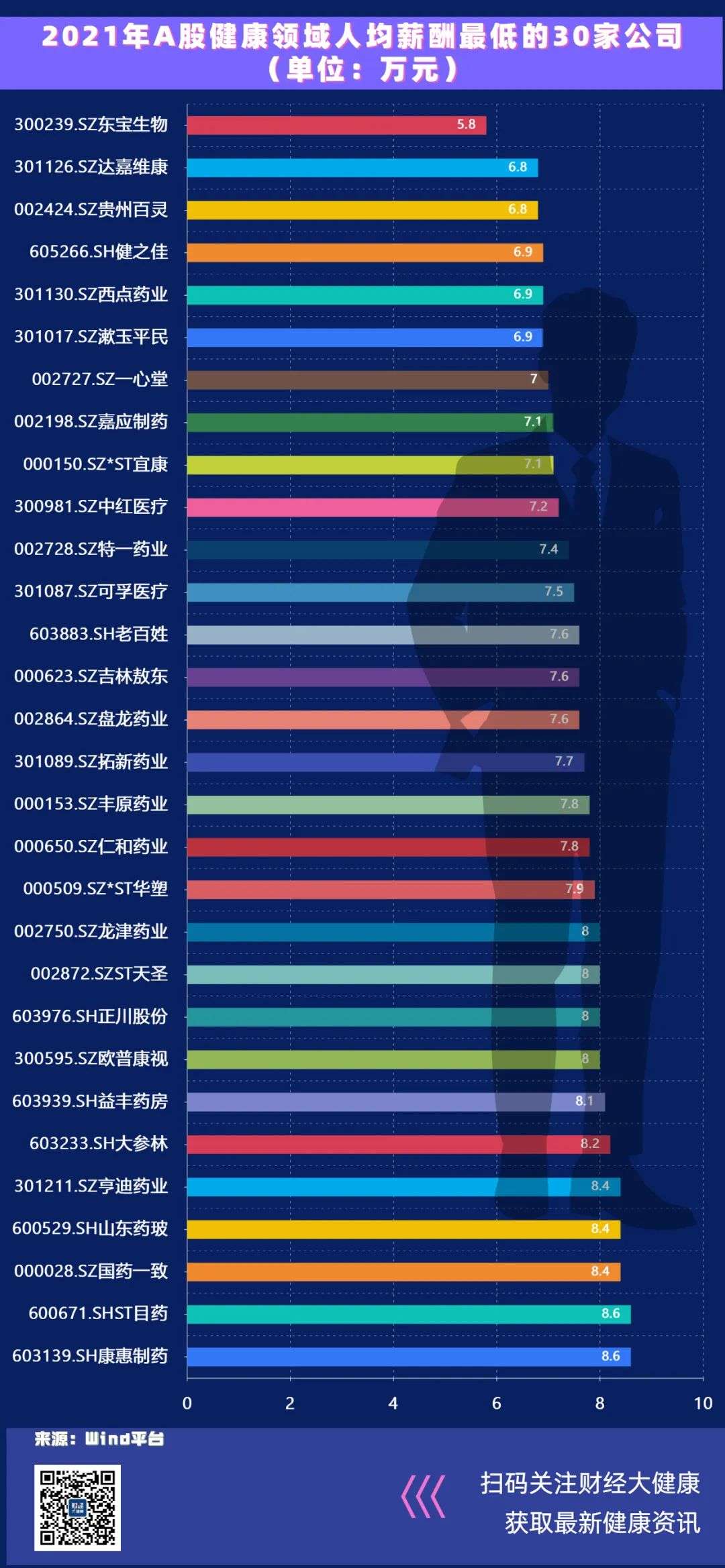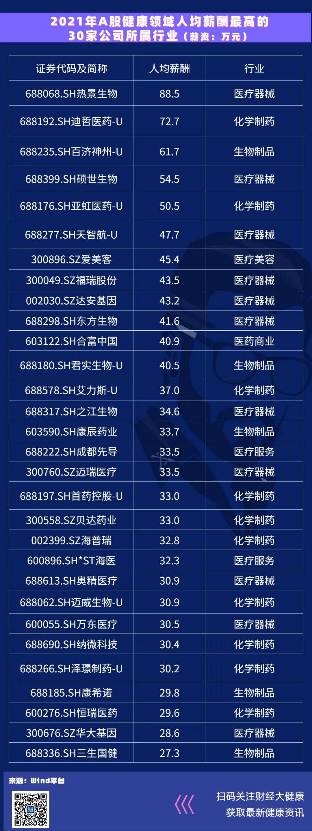 健康领域人均薪酬最高TOP30行业出炉,你所在公司上榜了吗?