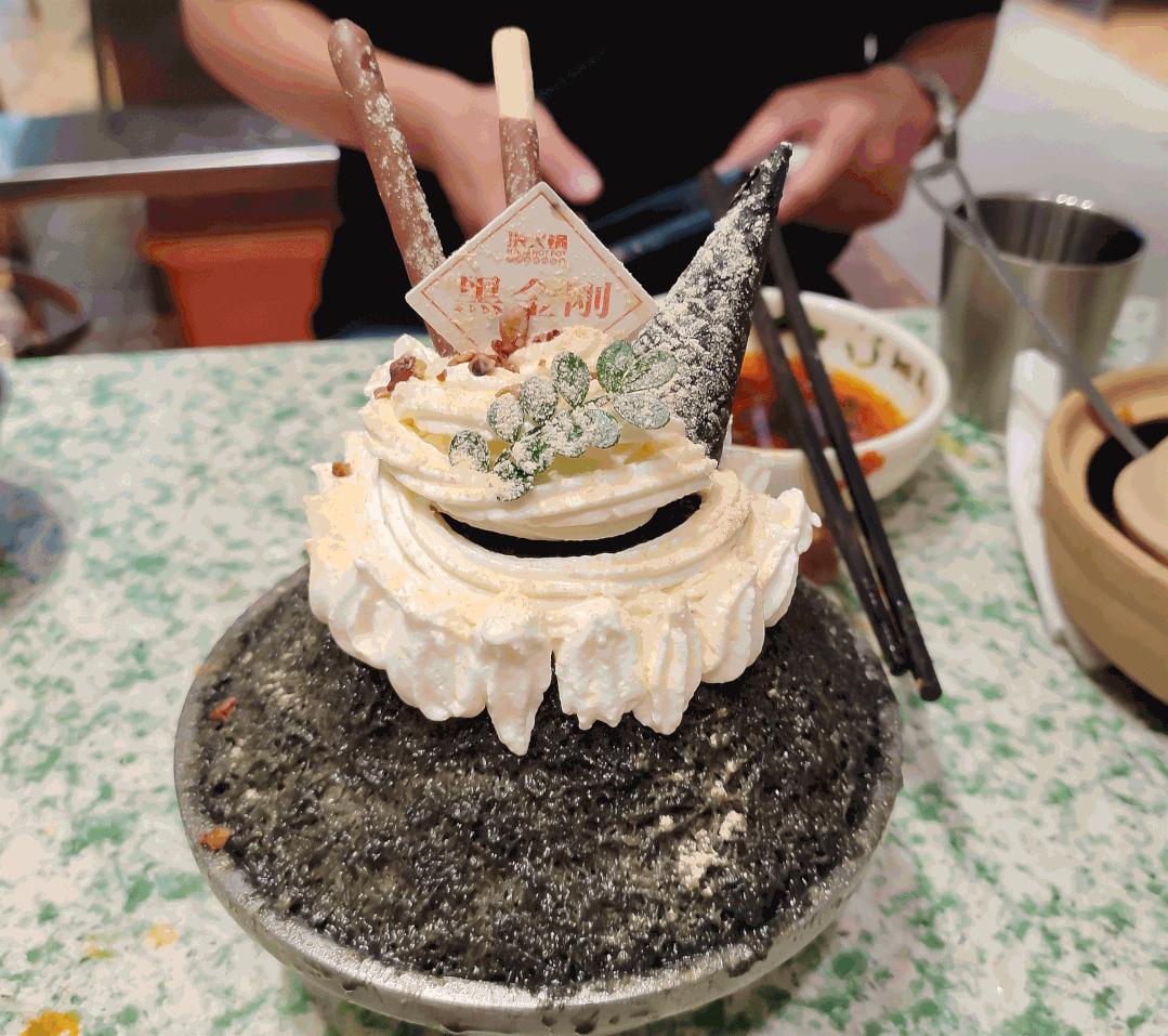 见惯了五颜六色的火锅甜品之后,黑色甜品总会让人耳目一新。