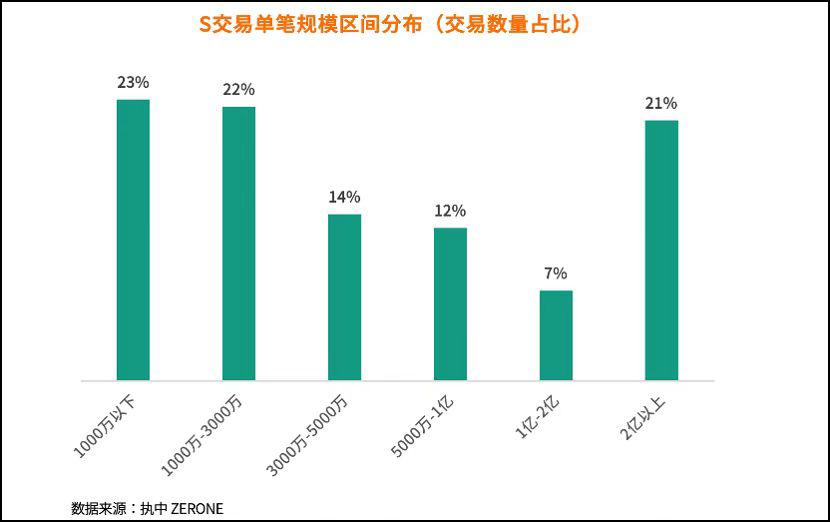 2021年S交易单笔规模区间分布 图片来源:执中ZERONE