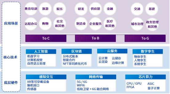 今年3月,毕马威发布的《初探元宇宙》报告中,将元宇宙分成三大板块,分别是底层硬件、核心技术与应用场景。事实上,中国目前在元宇宙的几大领域中已经初具规模。